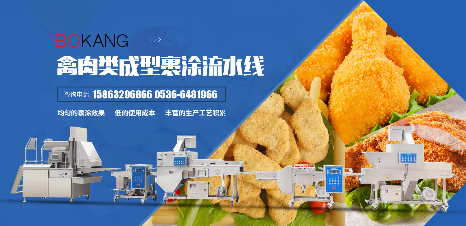 我們是一家生產(chǎn)預制調理類成型裹涂設備的廠家。為您提供產(chǎn)品裹涂解決方案。經(jīng)過多年的努力與革新,既可給食品工業(yè)的用戶提供生產(chǎn)線中的單臺設備,也可以提供多種設備組成的完整生產(chǎn)線。目前生產(chǎn)的食品設備已出口多個國家。